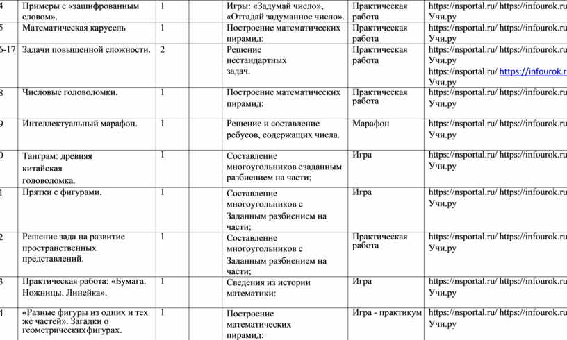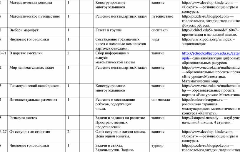 Математические (логические) игры, задачи, упражнения, графические задания, развлечения - загадки, задачи-шутки, ребусы, головоломки, дидактические игры и упражнения (геометрический материал), конкурсы и др. |