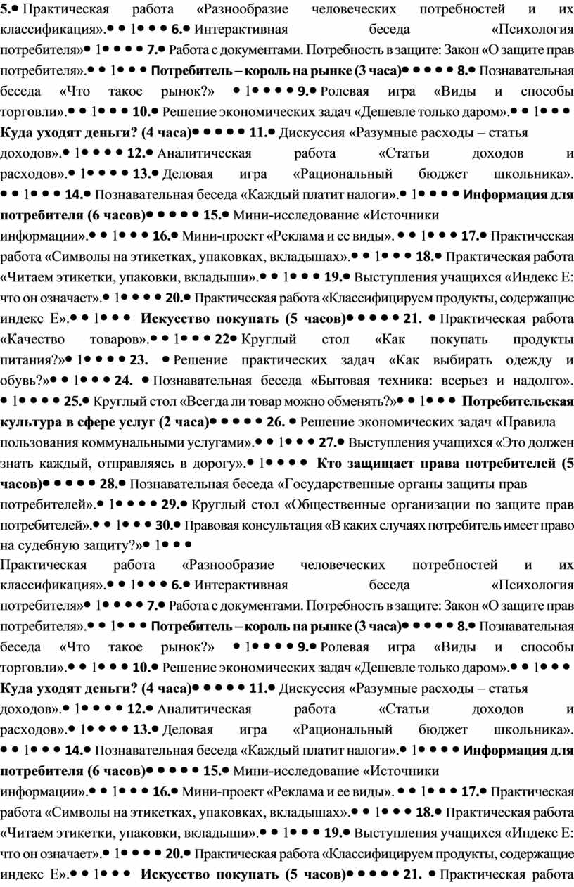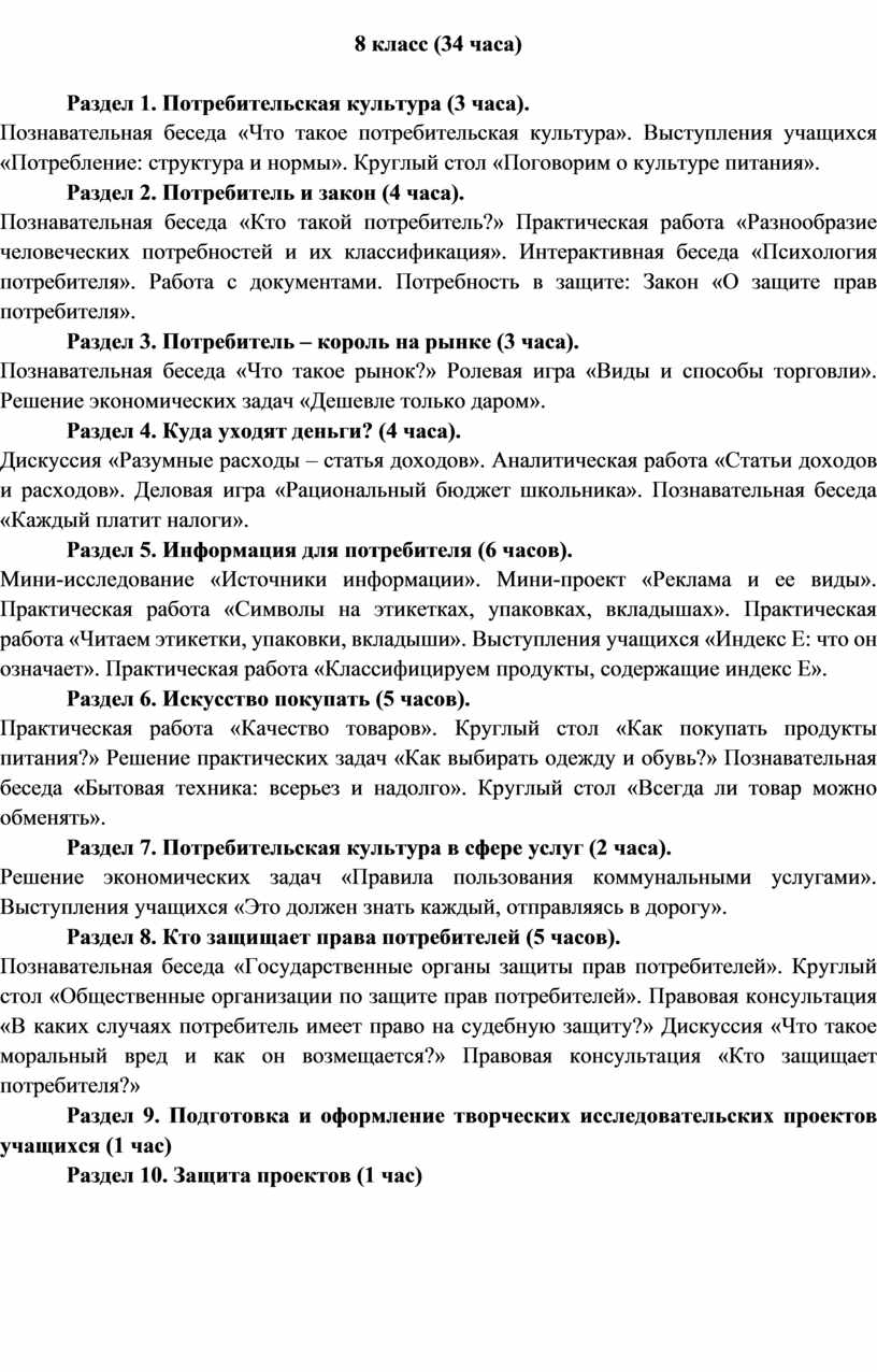 Познавательная беседа «Кто такой потребитель?» Практическая работа «Разнообразие человеческих потребностей и их классификация». Интерактивная беседа «Психология потребителя». Работа с документами. Потребность в защите: Закон «О защите прав потребителя».