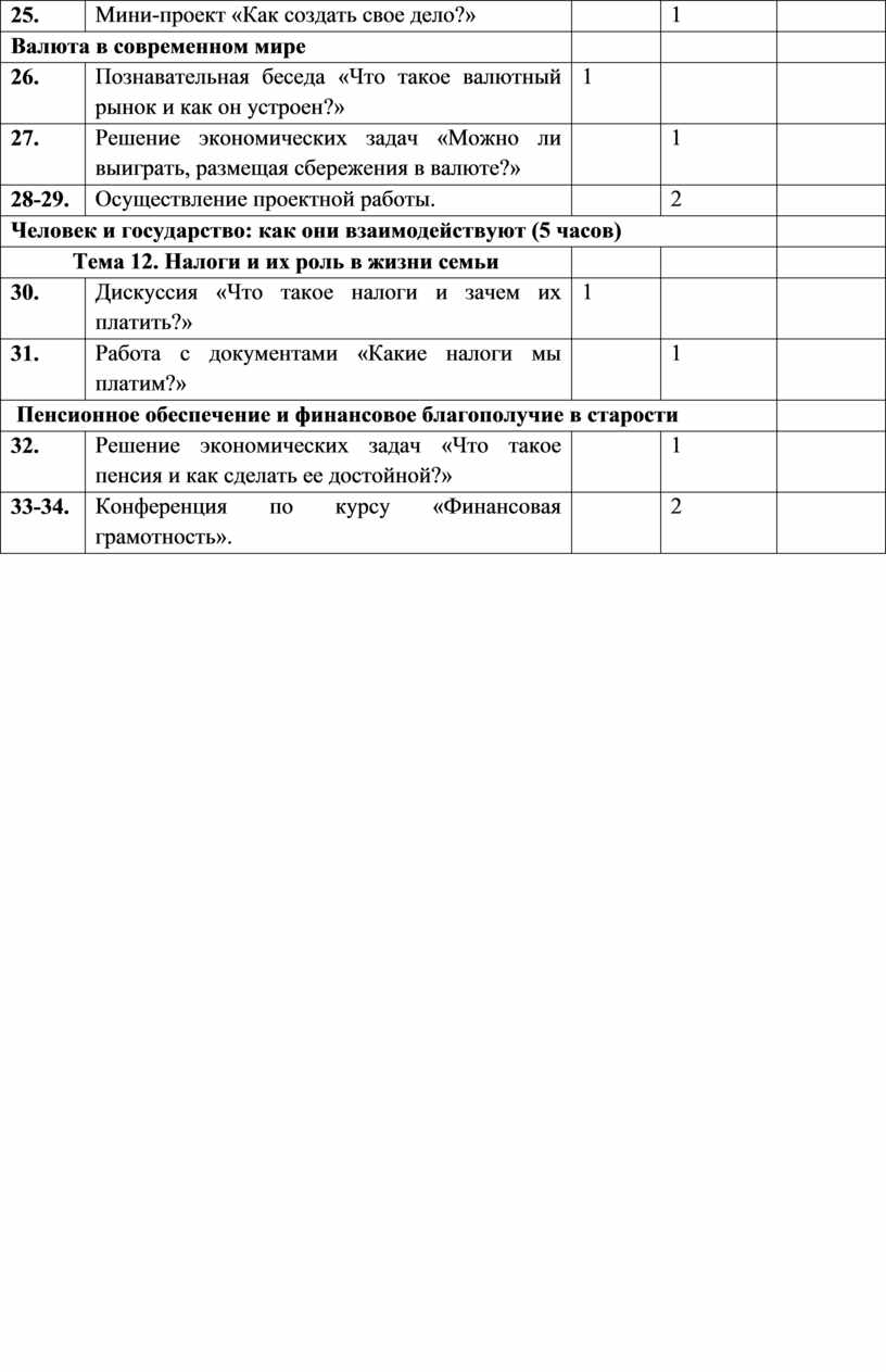 • владение понятиями: деньги и денежная масса, покупательная способность денег, человеческий капитал, благосостояние семьи, профицит и дефицит семейного бюджета, банк, инвестиционный фонд, финансовое планирование, форс-мажор, страхование, финансовые риски, бизнес, валюта и валютный рынок, прямые и косвенные налоги, пенсионный фонд и пенсионная система;
