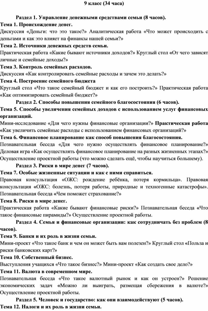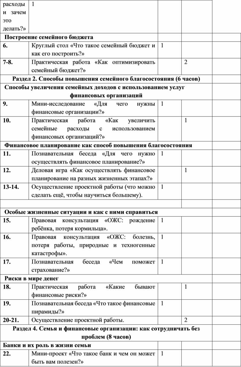 Раздел 1. Управление денежными средствами семьи (8 часов) |