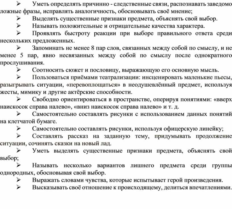 Ø Уметь определять причинно - следственные связи, распознавать заведомо ложные фразы, исправлять аналогичность, обосновывать своё мнение;