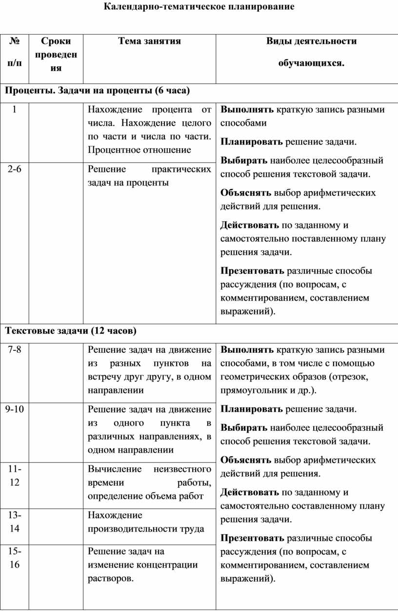 Календарно-тематическое планирование