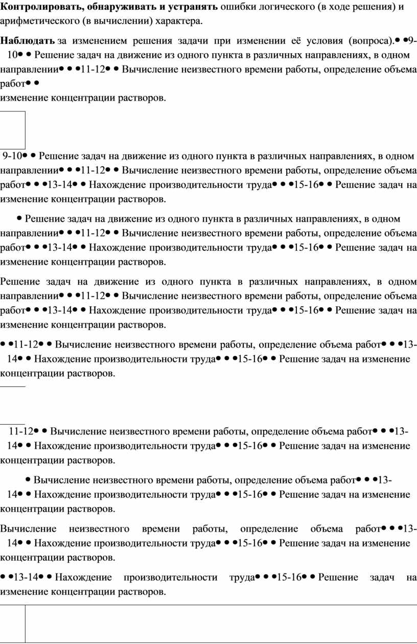 Выполнять краткую запись разными способами, в том числе с помощью геометрических образов (отрезок, прямоугольник и др.). Планировать решение задачи. Выбирать наиболее целесообразный способ решения текстовой задачи. Объяснять выбор арифметических действий для решения. Действовать по заданному и самостоятельно составленному плану решения задачи. Презентовать различные способы рассуждения (по вопросам, с комментированием, составлением выражений). Выбирать самостоятельно способ решения текстовых задач. Объяснять выбор арифметических действий для решения. Использовать геометрические образы в ходе решения задачи. Контролировать, обнаруживать и устранять ошибки логического (в ходе решения) и арифметического (в вычислении) характера. Наблюдать за изменением решения задачи при изменении её условия (вопроса). |