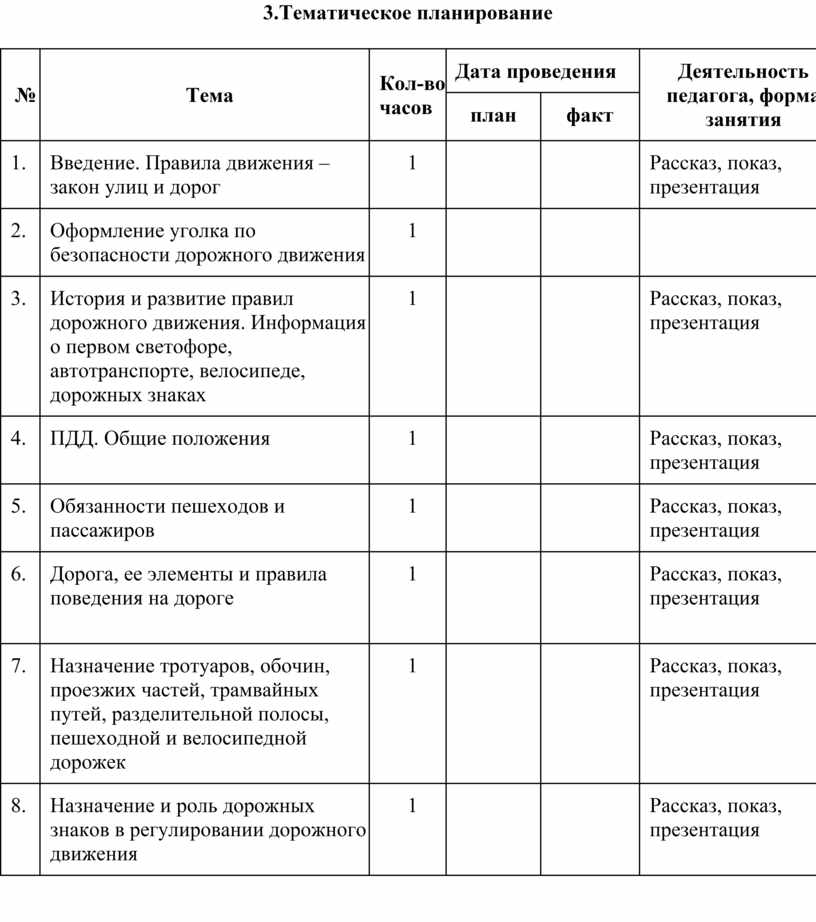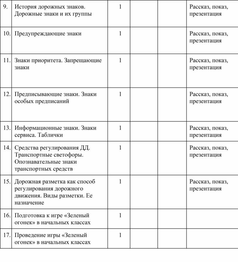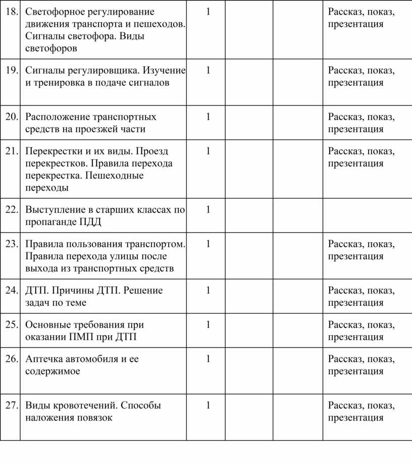 · ПДД для пешеходов – правосторонне движение, правила перехода дороги, места перехода проезжей части дороги. Обход стоящего транспорта у обочины. Движение пеших групп и колонн. Регулируемые и нерегулируемые перекрестки. Средства регулирования движения. Знаки.