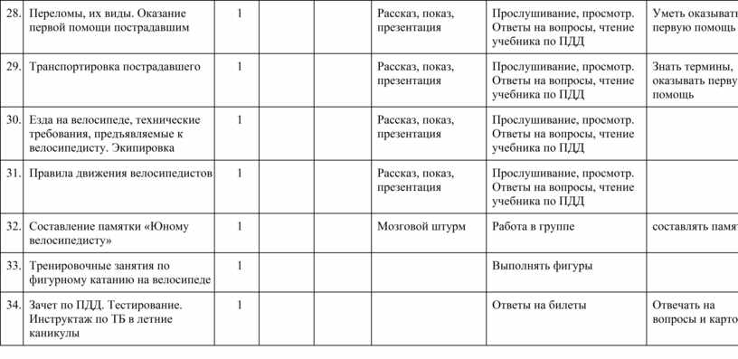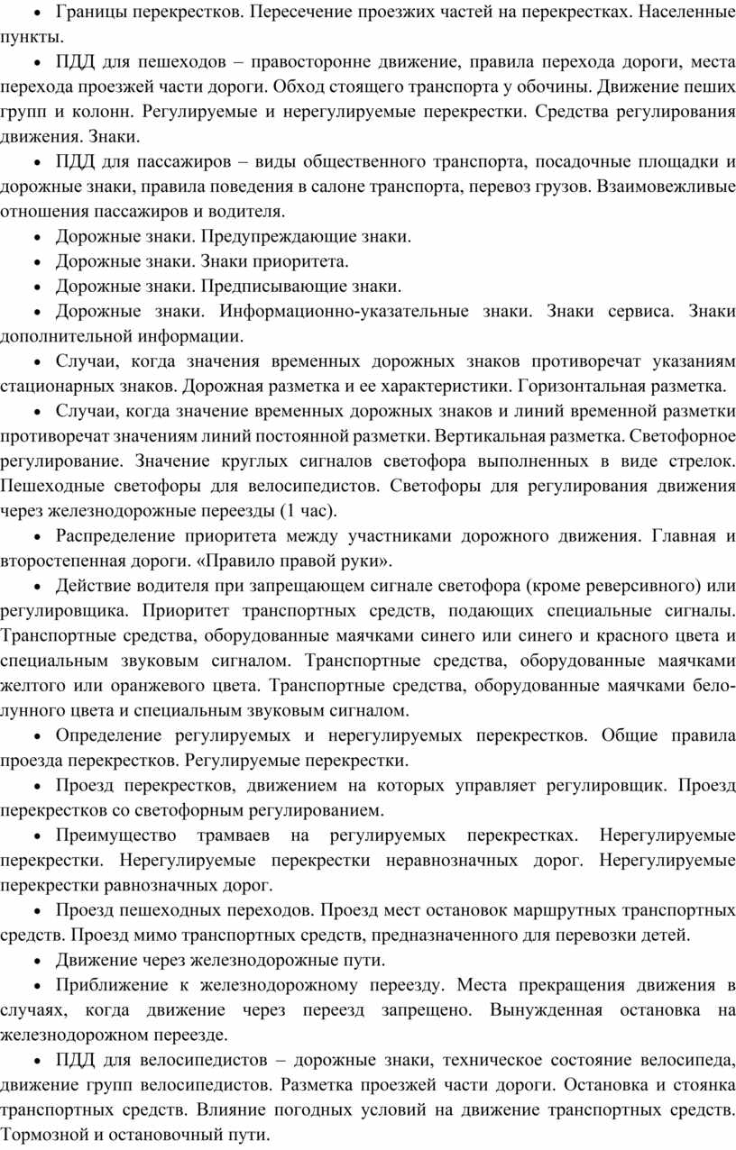 · ПДД для велосипедистов – дорожные знаки, техническое состояние велосипеда, движение групп велосипедистов. Разметка проезжей части дороги. Остановка и стоянка транспортных средств. Влияние погодных условий на движение транспортных средств. Тормозной и остановочный пути.