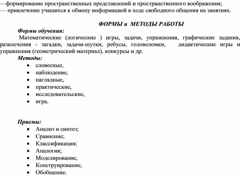 Программа предусматривает включение задач и заданий, трудность которых определяется не столько математическим содержанием, сколько новизной и необычностью математической ситуации, что способствует появлению у учащихся желания отказаться от образца, проявить самостоятельность, а также формированию умений работать в условиях поиска и развитию сообразительности, любознательности.