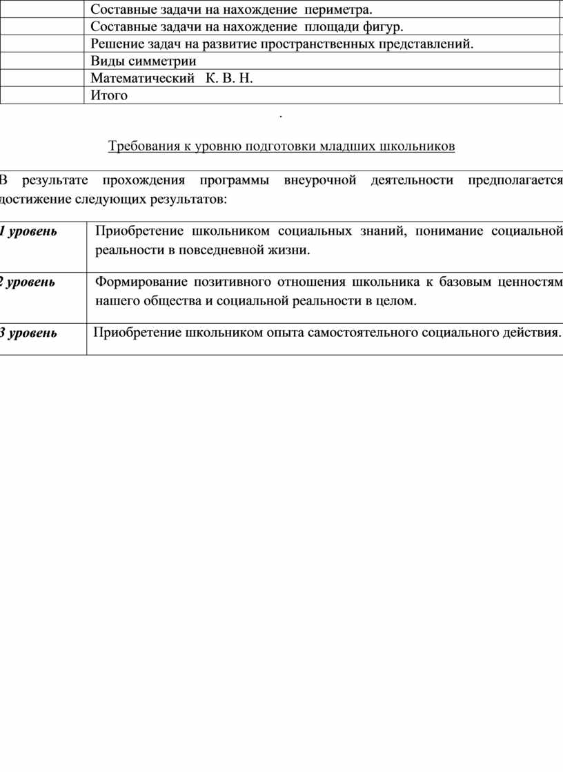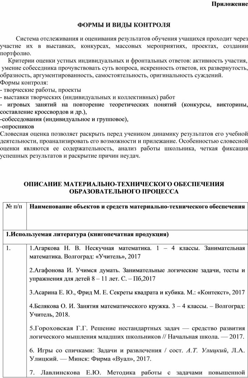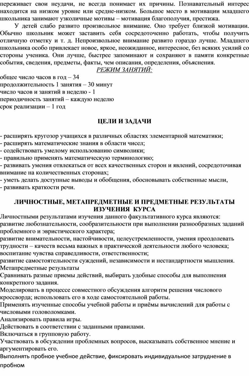 1. По своему содержанию она строго не регламентирована государственной программой. Однако на внеклассных занятиях математический материал предлагается в соответствии со знаниями и умениями учащихся. Это означает, что при подборе заданий по математике для занятий непосредственная связь с текущим программным материалом учитывается, но не обязательна. Курс построен исходя только из общего уровня знаний и умений учащихся по математике. Это означает также, что сами задания по математике по форме не обязательно должны быть точно такими, какие встречаются на уроках.