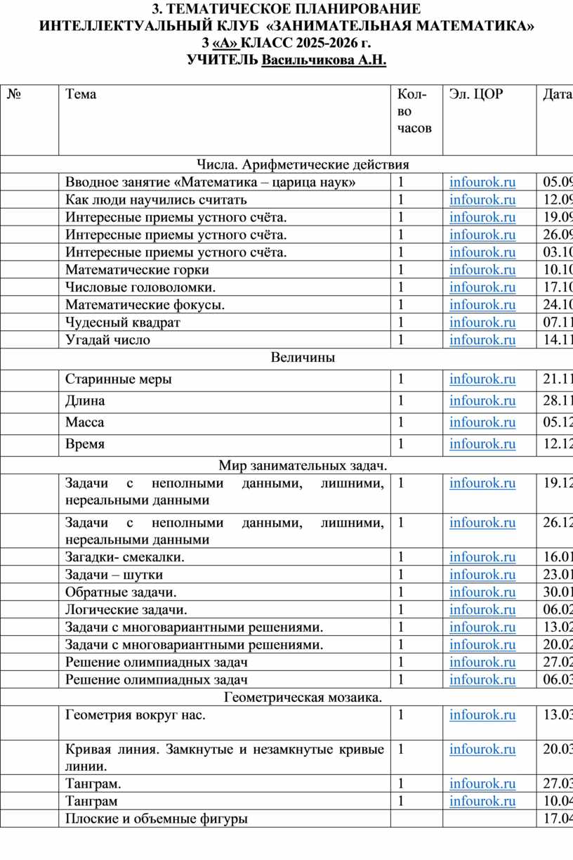 Курс «Занимательная математика» составляет неразрывную часть учебно-воспитательного процесса обучения математике, сложного процесса воздействия на сознание и поведение учащихся 3 классов, углубление и расширение их знаний и навыков таких факторов, как содержание самого учебного предмета —математики, всей деятельности учителя в сочетании с разносторонней деятельностью учащихся.