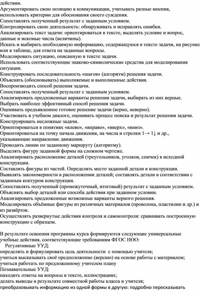 Объяснять (обосновывать) выполняемые и выполненные действия.