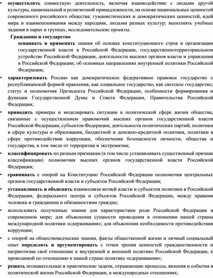 • создание условий для освоения обучающимися способов успешного взаимодействия с различными политическими, правовыми, финансово-экономическими и другими социальными институтами для реализации личностного потенциала в современном динамично развивающемся российском обществе;