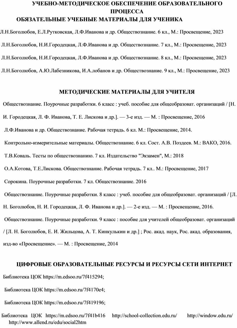 Обществознание. Поурочные разработки. 8 класс : учеб. пособие для общеобразоват. организаций / [Л. Н. Боголюбов, Н. И. Городецкая, Л. Ф. Иванова и др.]. — 2-е изд. — М. : Просвещение, 2016.