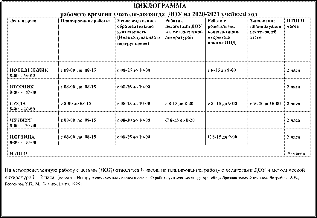 • Циклограмма рабочего времени учителя-логопеда