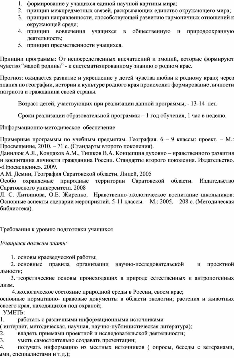 4. принцип вовлечения учащихся в общественную и природоохранную деятельность;