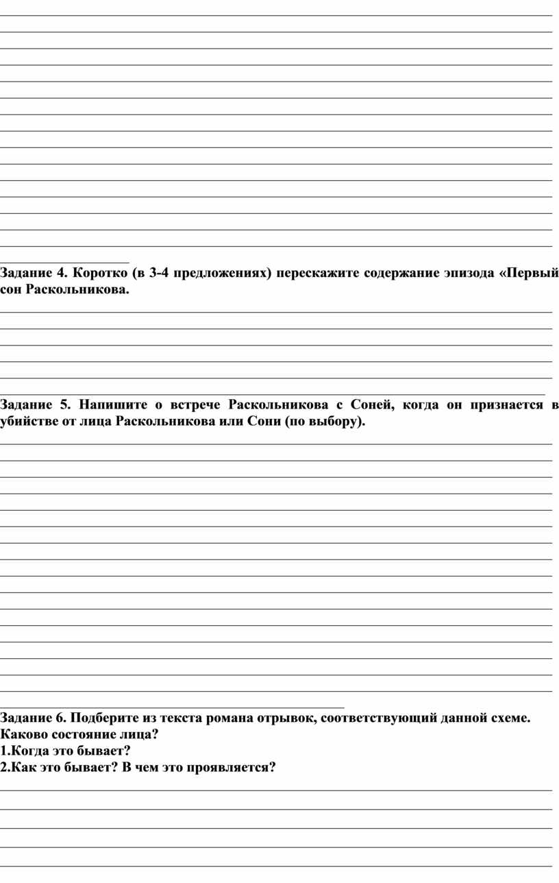 Задание 4. Коротко (в 3-4 предложениях) перескажите содержание эпизода «Первый сон Раскольникова.