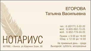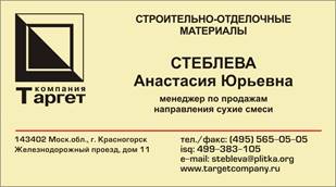 Примеры Визитных карточек: