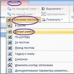 7. При необходимости поместить фотографию или, например, логотип фирмы на Визитную карточку. Использовать вкладку Вставка – Рисунок. Откроется окно Вставка рисунка. Выбрать папку, где содержится фотография. Вставить фотографию. Использовать вкладку Формат – Обтекание текстом – Вокруг рамки.