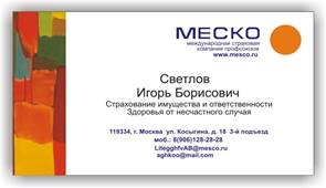 Фотографию подогнать по размерам Визитки и расположить в левой части Визитной карточки.