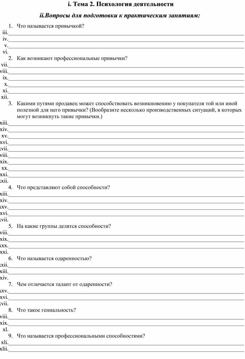 Вопросы для подготовки к практическим занятиям: