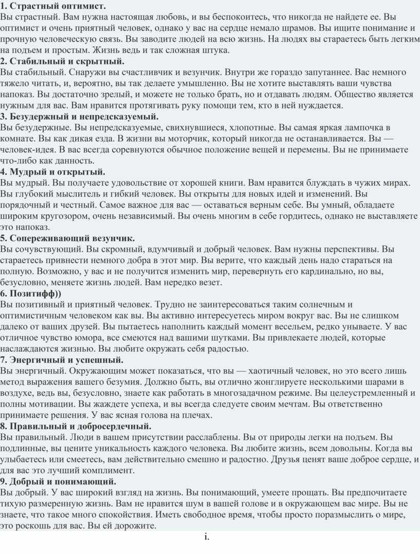 «Определение типа личности»