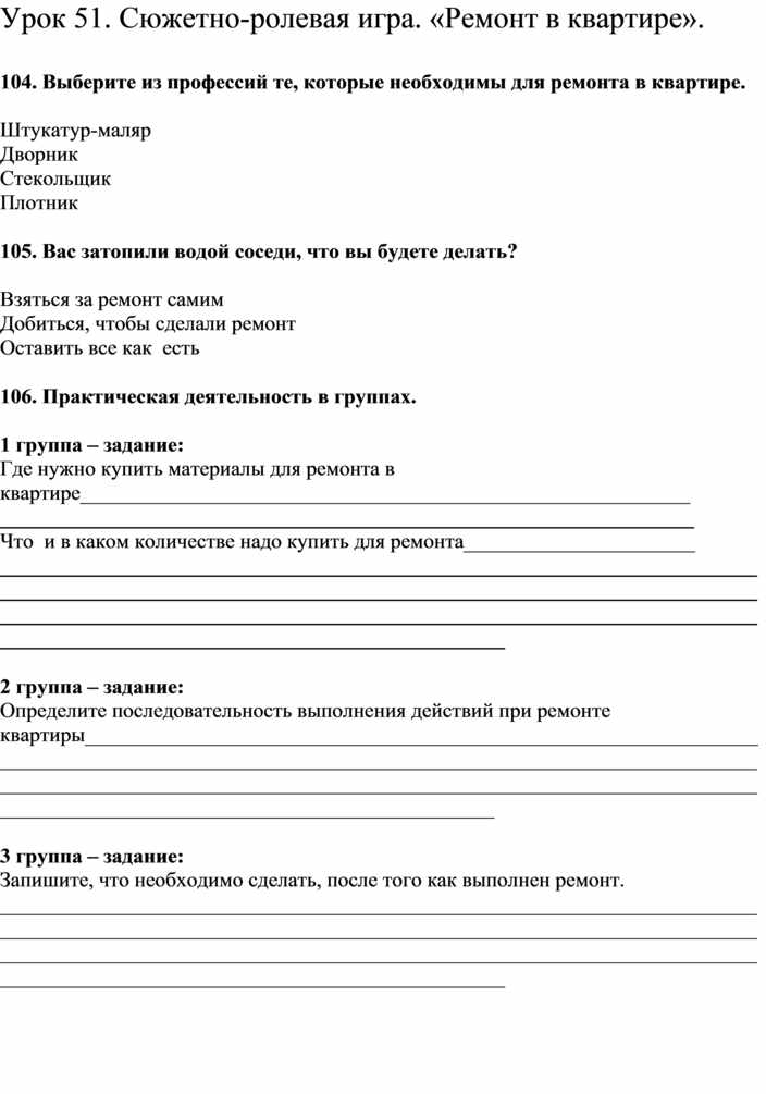 Урок 51. Сюжетно-ролевая игра. «Ремонт в квартире»………………………46