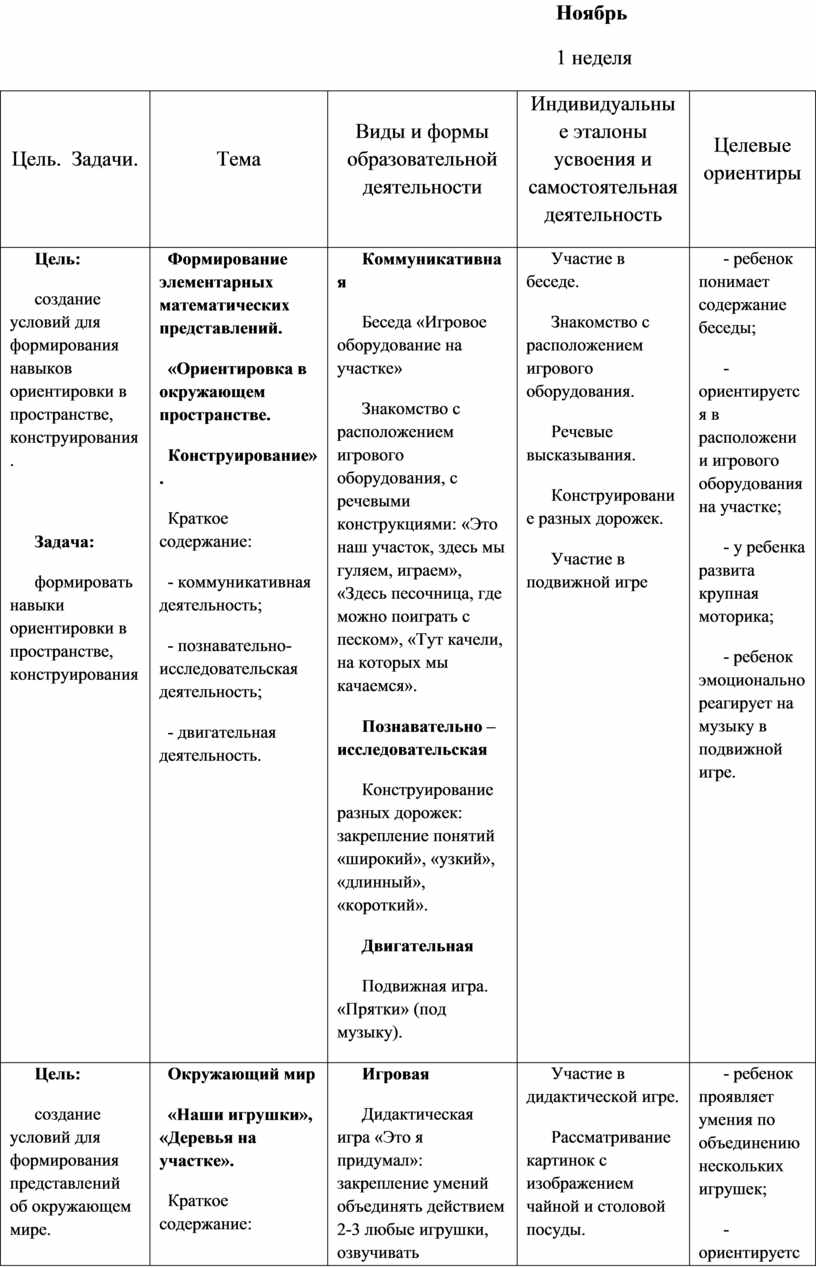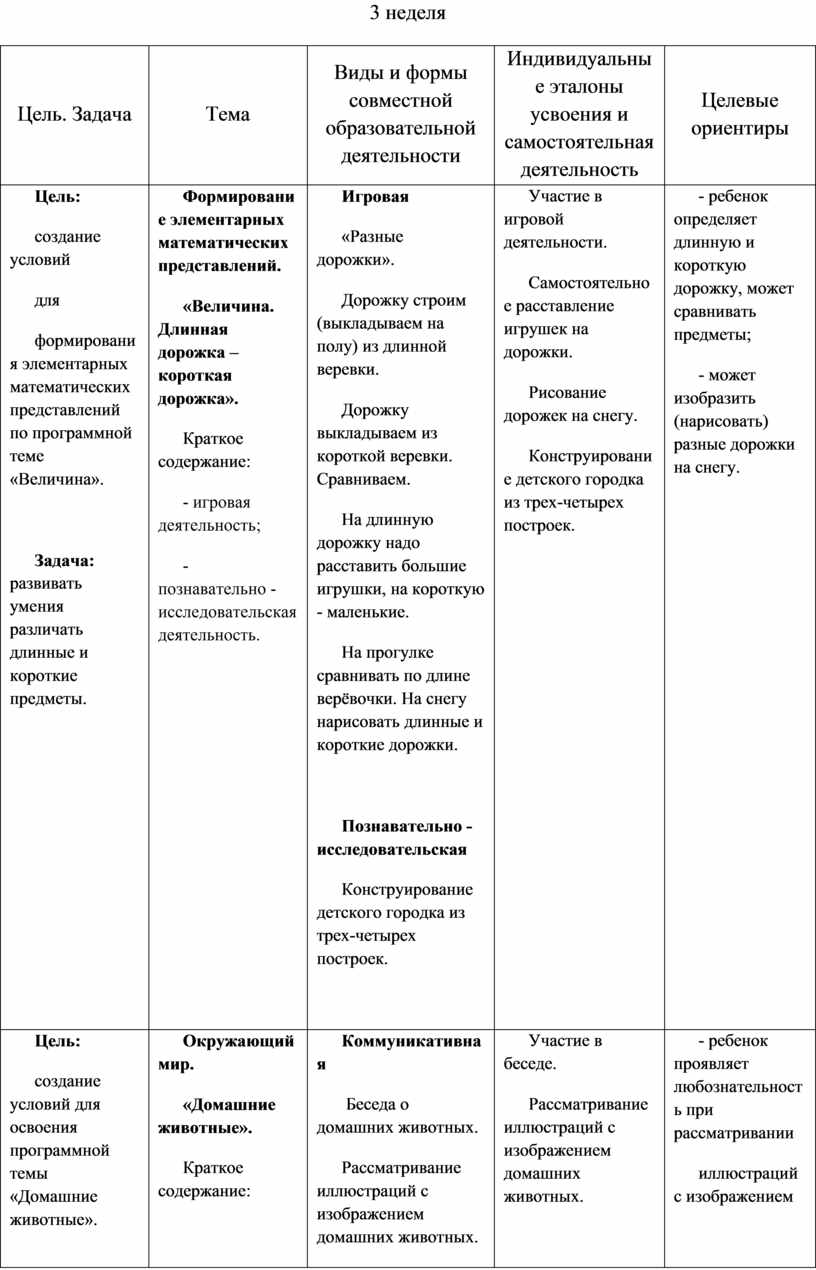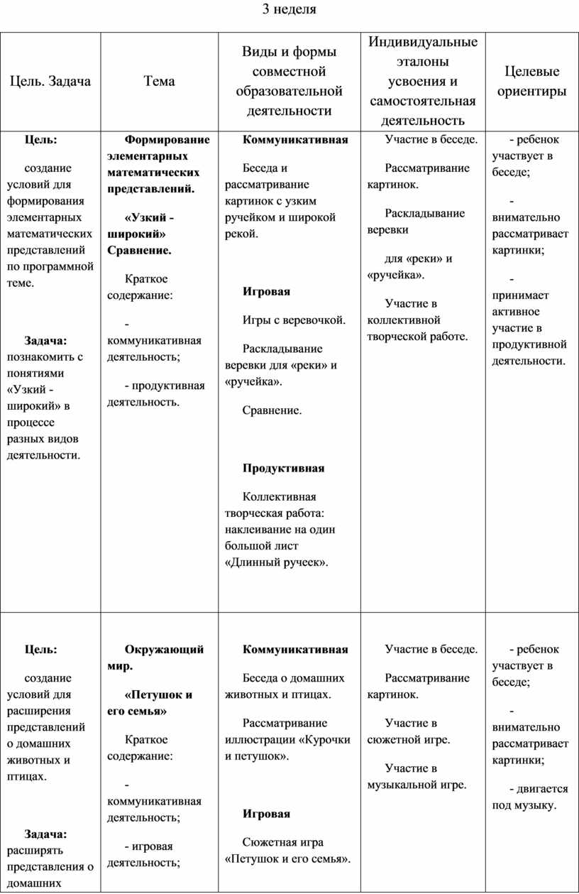 - в определении целевых ориентиров по каждой конкретной теме.