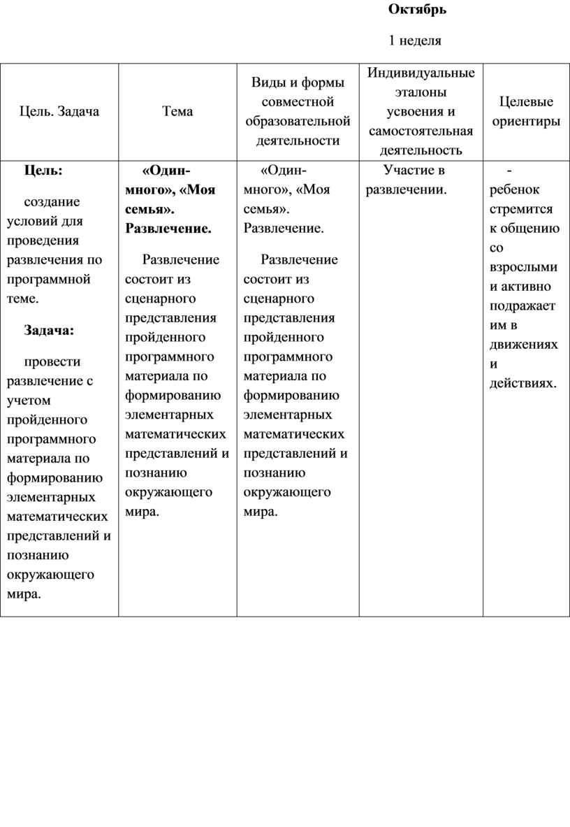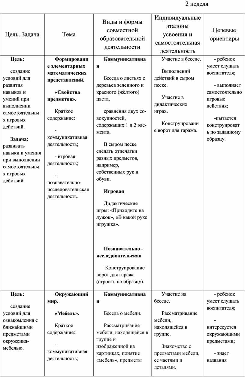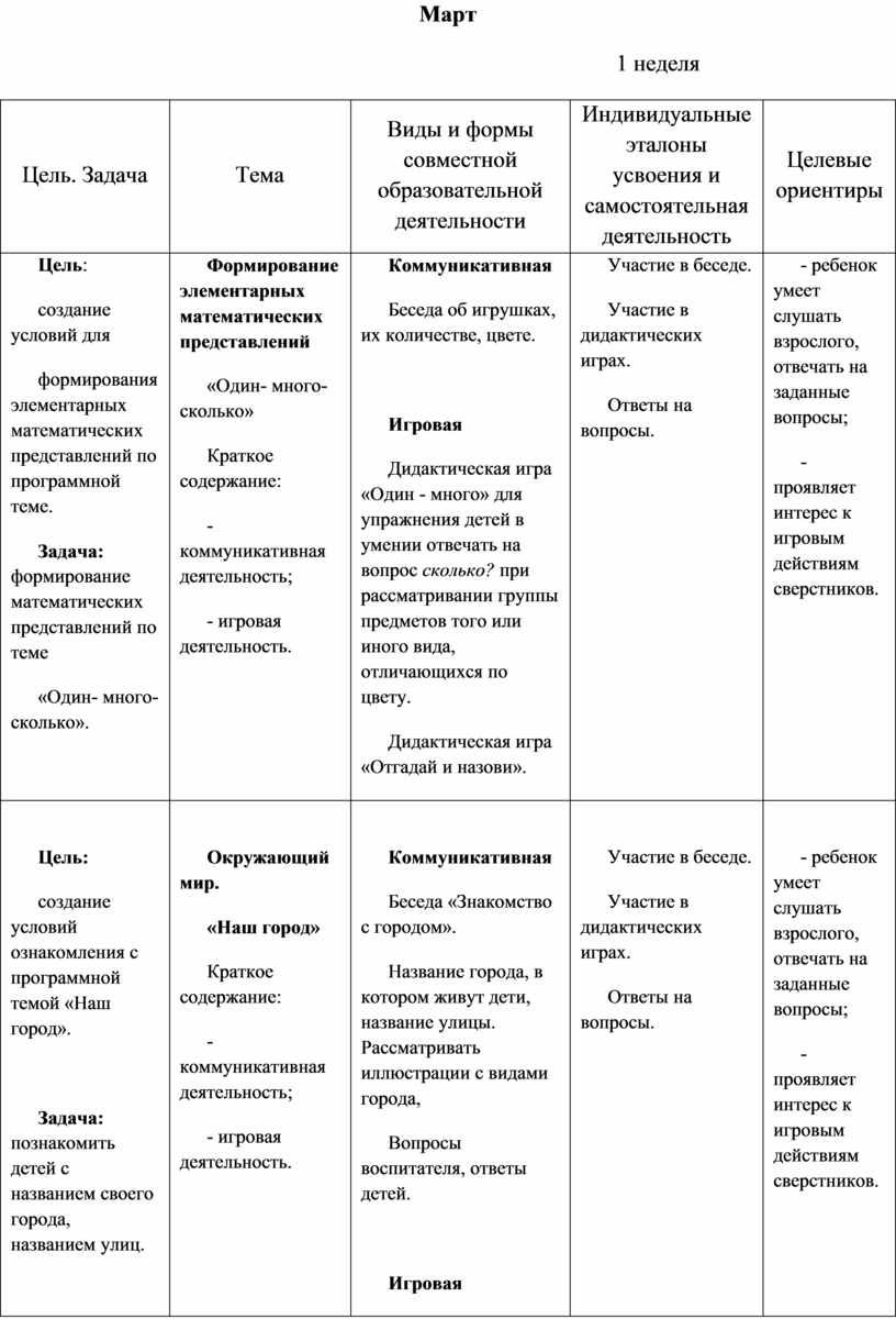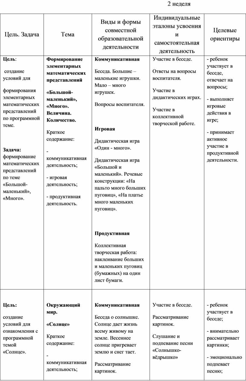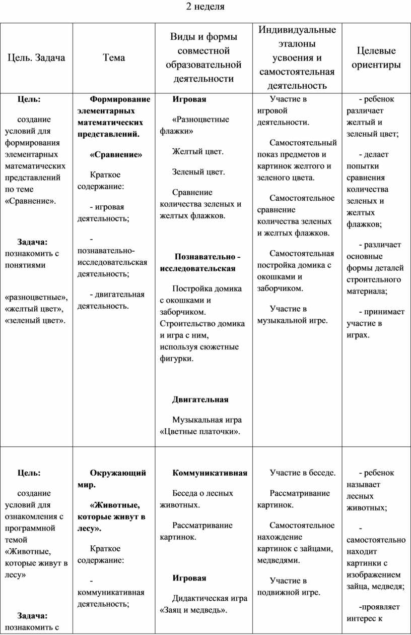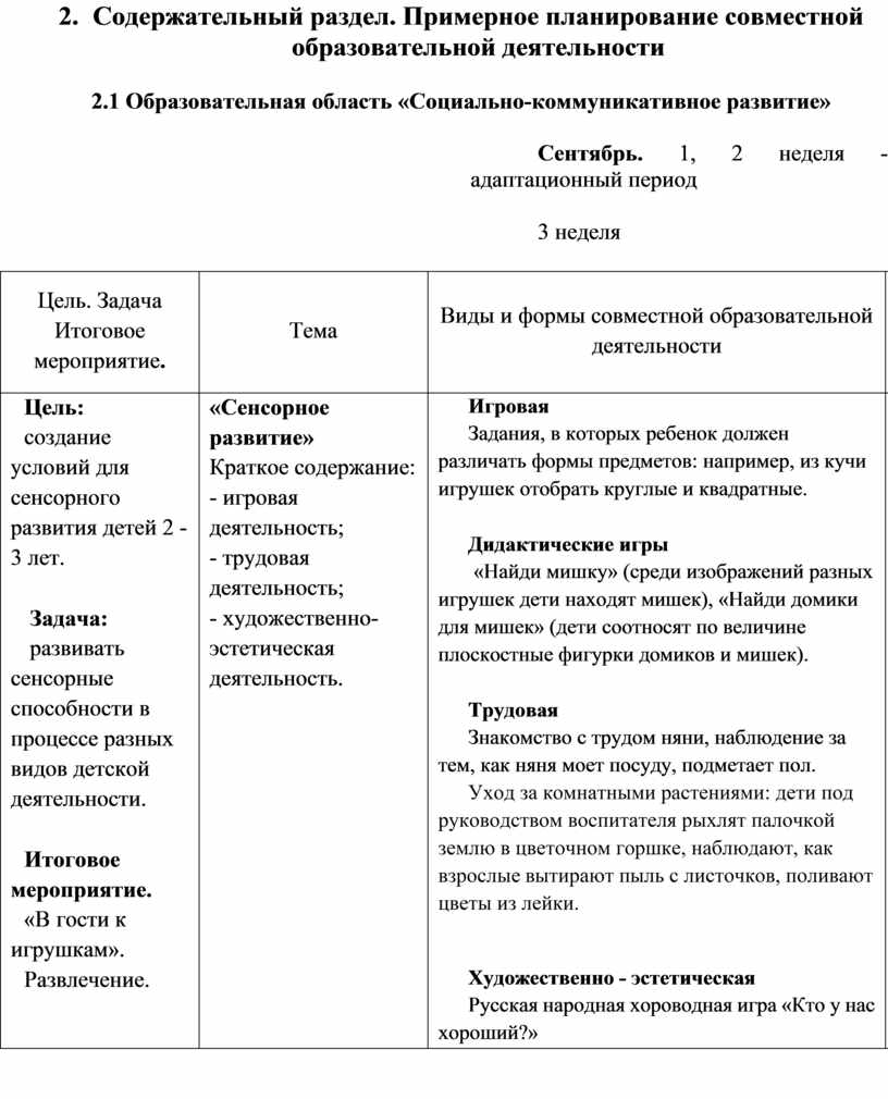 2. Содержательный раздел. Примерное планирование совместной образовательной деятельности