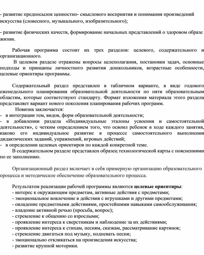 Рабочая программа состоит их трех разделов: целевого, содержательного и организационного.
