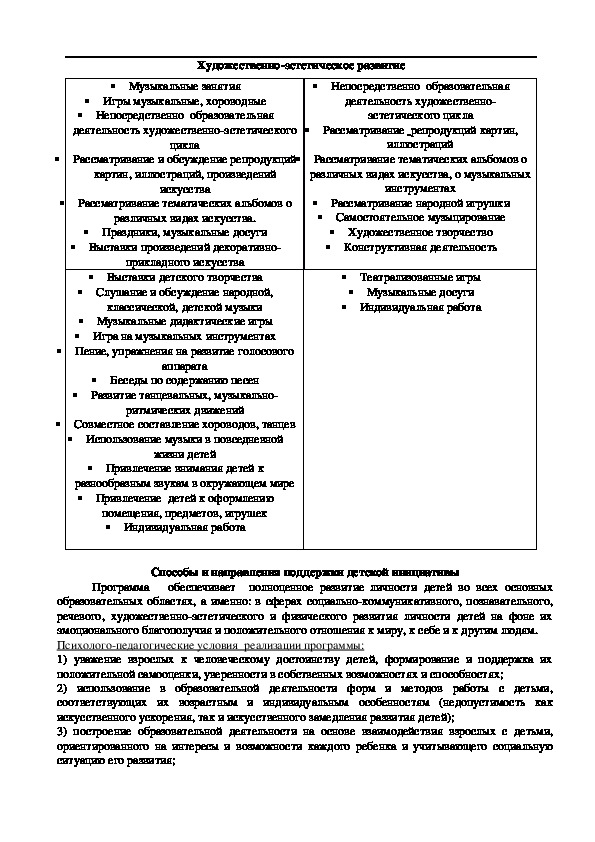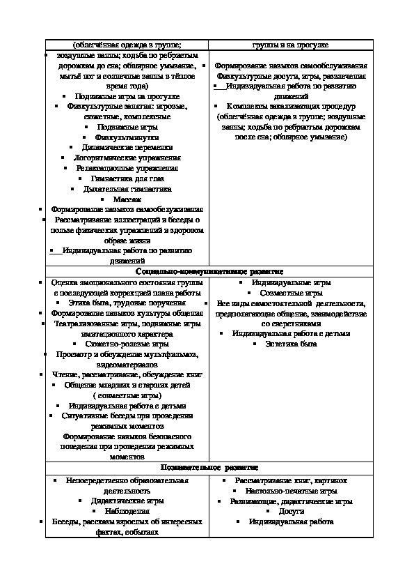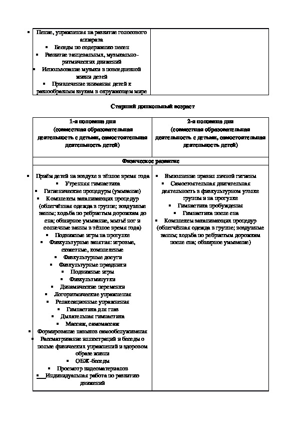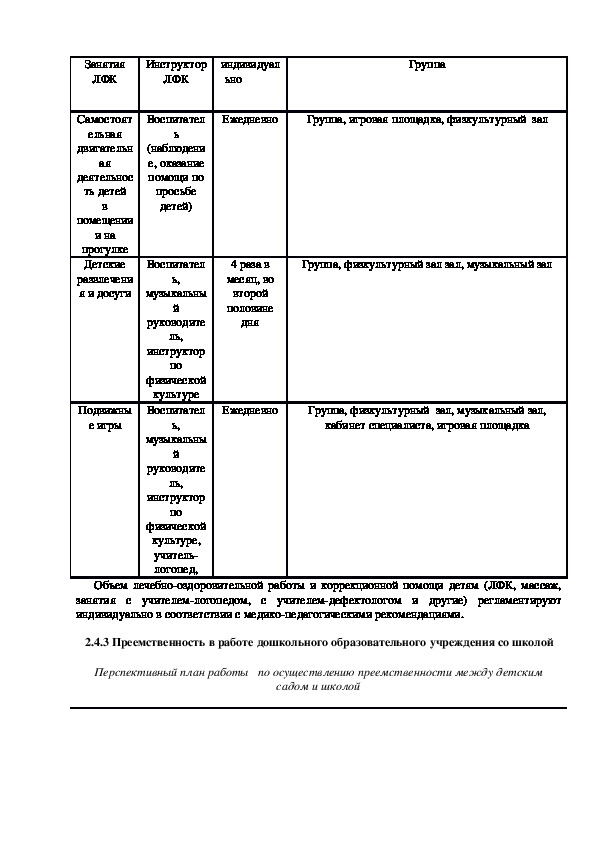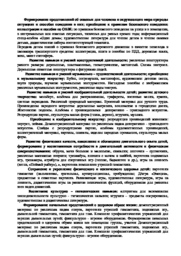 здоровья и подготовку их к школе. Содержание Программы предполагает организацию: