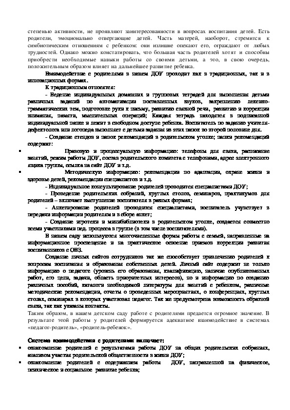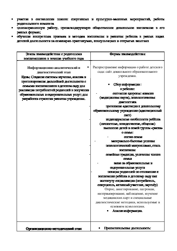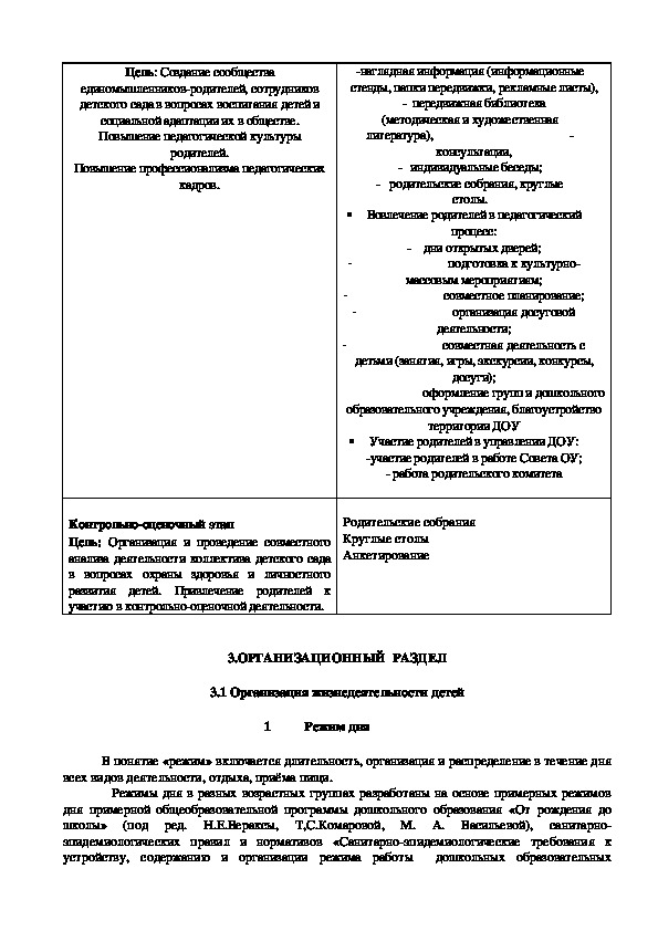 взаимоотношений с семьями воспитанникови развития компетентности родителей; обеспечение