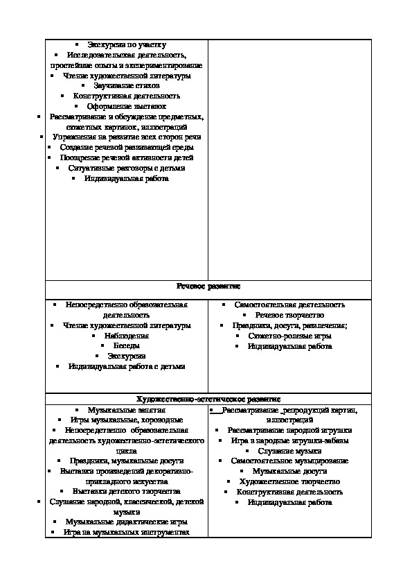 фольклора, самообслуживание и элементарный бытовой труд, конструирование из разного
