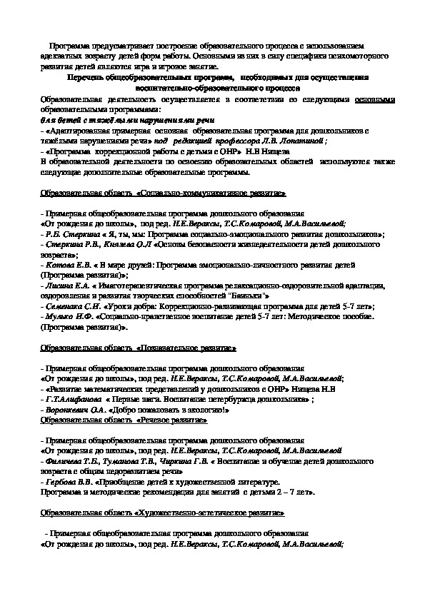 «Программа коррекционной работы с детьми с ОНР» Н.В Нищева