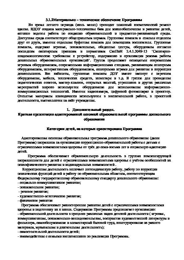Краткая презентация адаптированной основной образовательной программы дошкольного