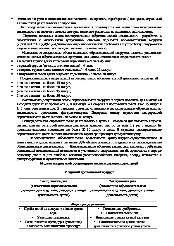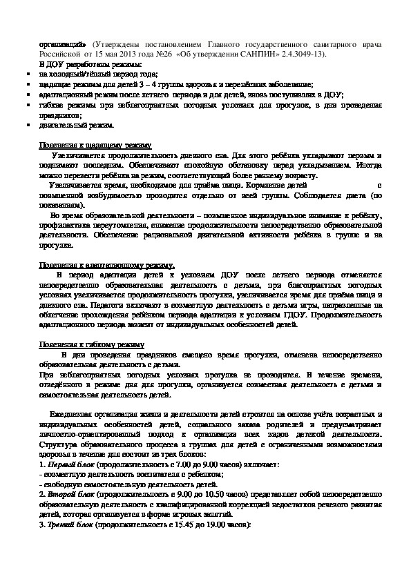 режима работы дошкольных образовательных организаций» (Утверждены постановлением