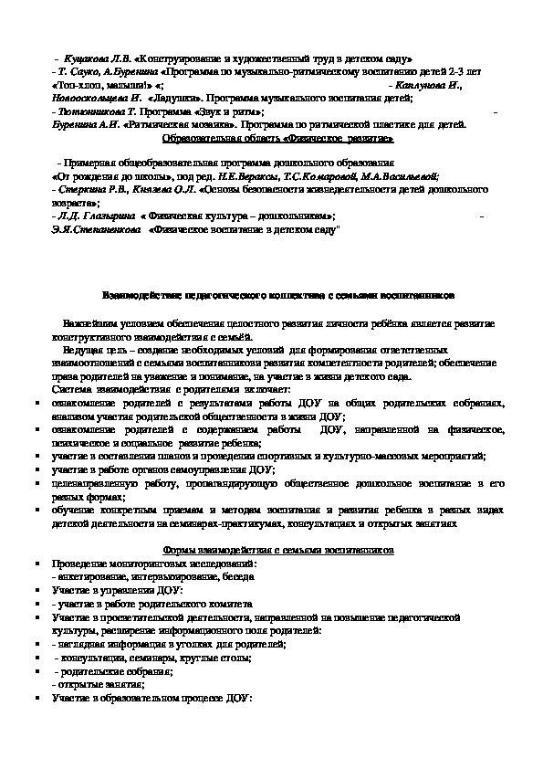 взаимодействия с семьями воспитанников по реализации Программы.Программа предусматривает построение образовательного процесса с использованием