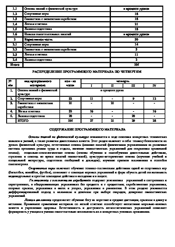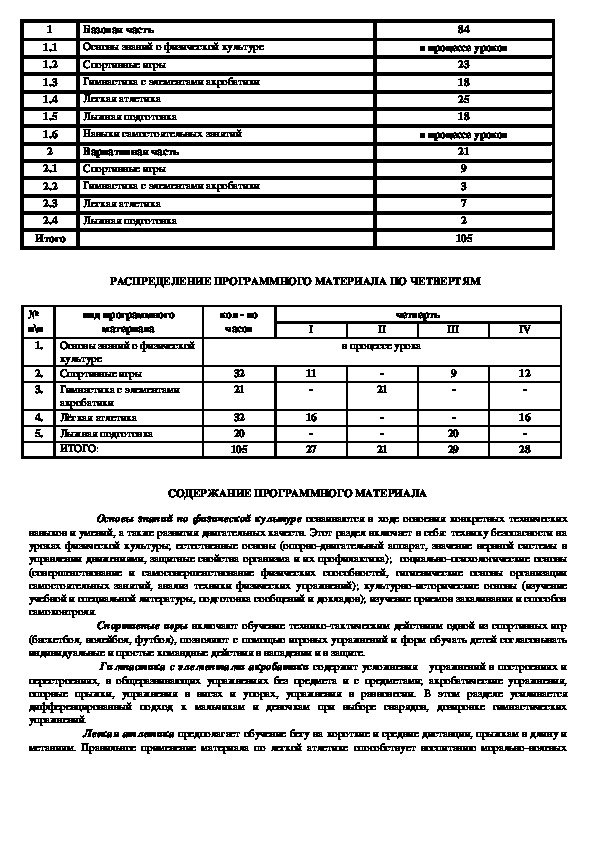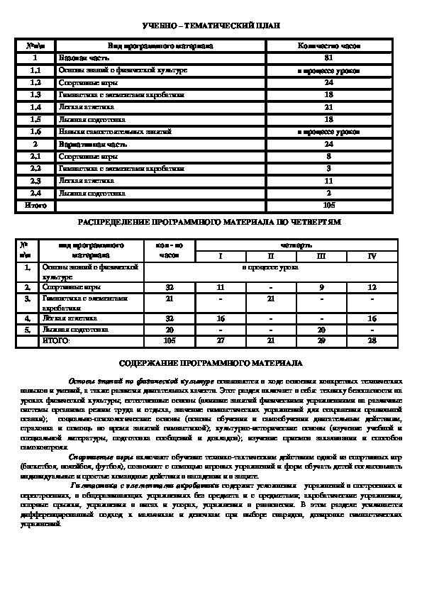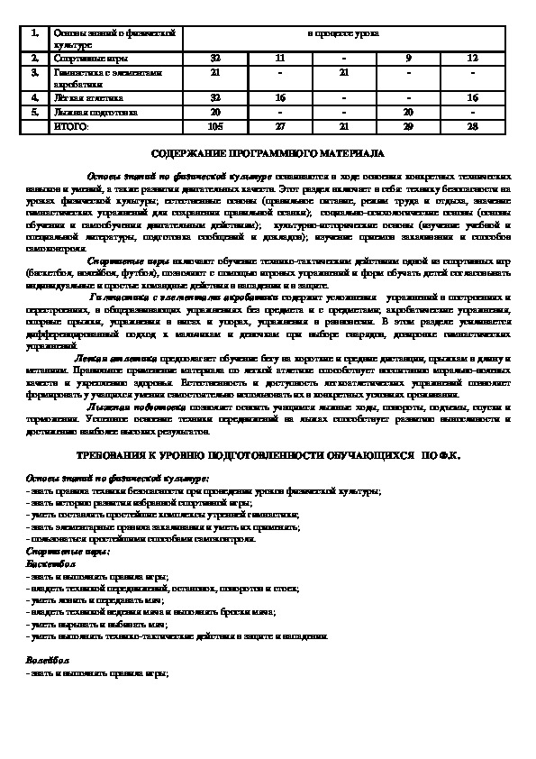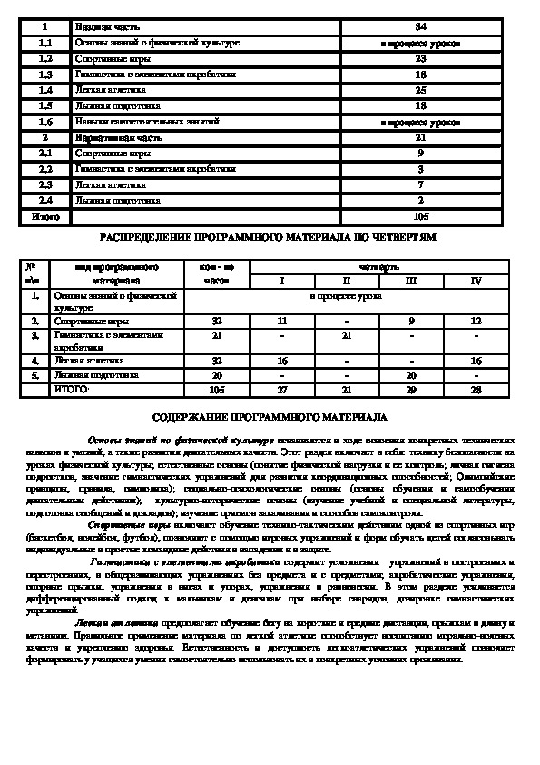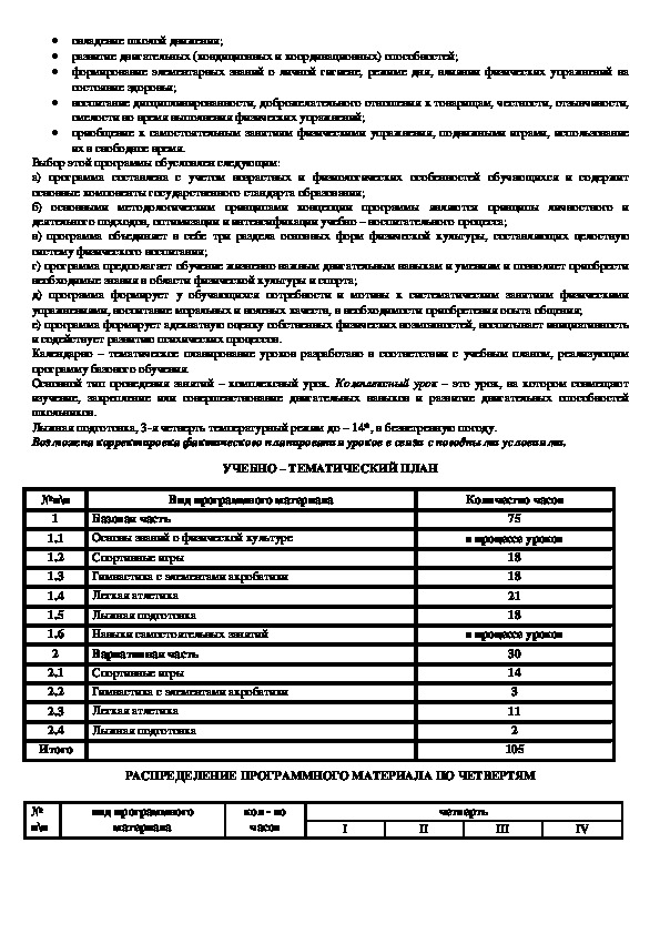 классы» авторов д.п.н. В.И. Ляха и к.п.н. А.А. Зданевич, которая рассчитана на 105 часов в год (3 часа в неделю) и