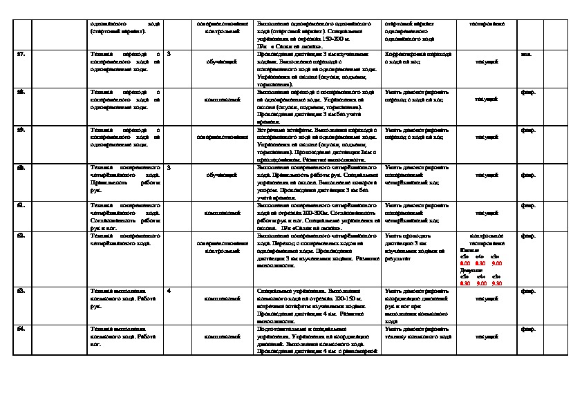 Лыжная подготовка, 3я четверть температурный режим до – 14*, в безветренную погоду.