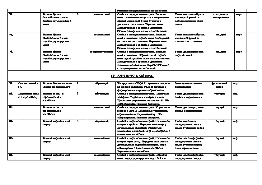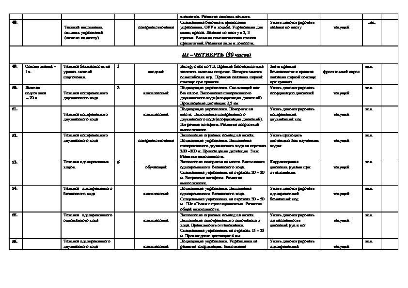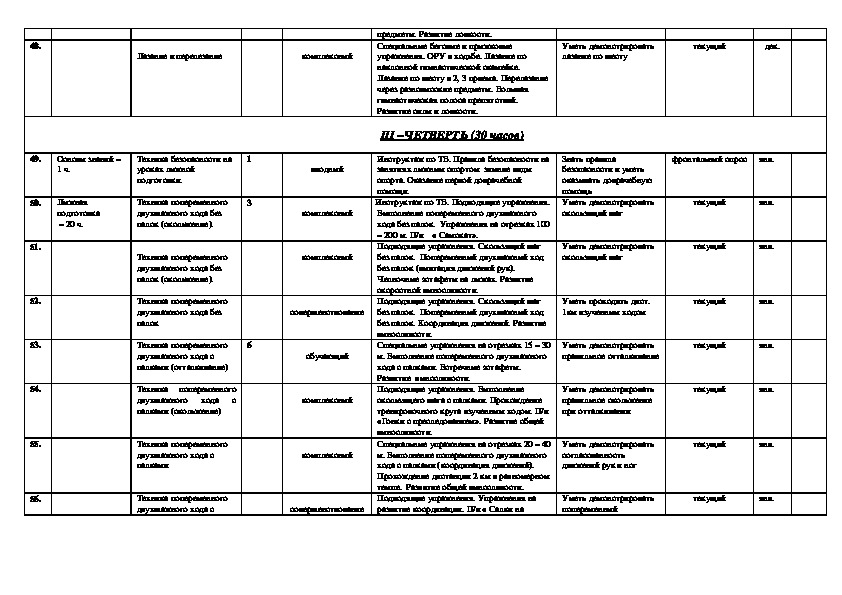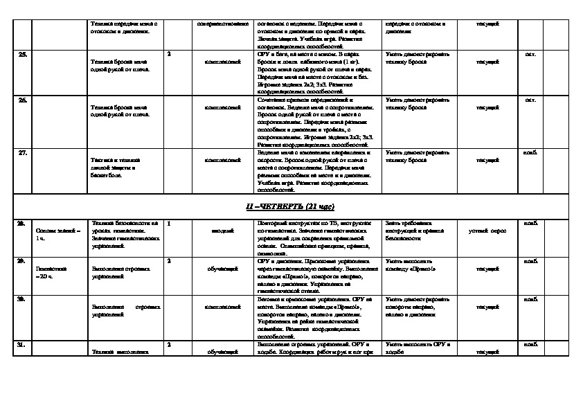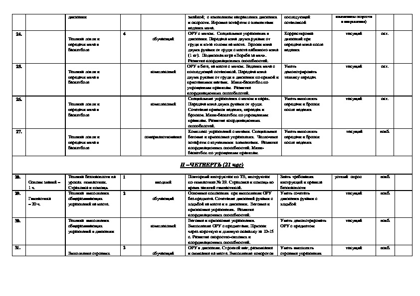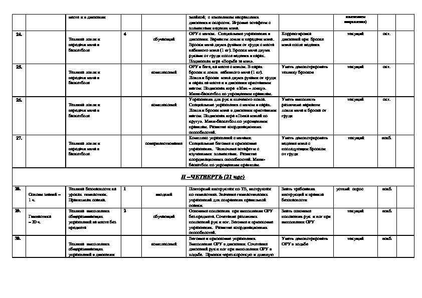 РАСПРЕДЕЛЕНИЕ ПРОГРАММНОГО МАТЕРИАЛА ПО ЧЕТВЕРТЯМ