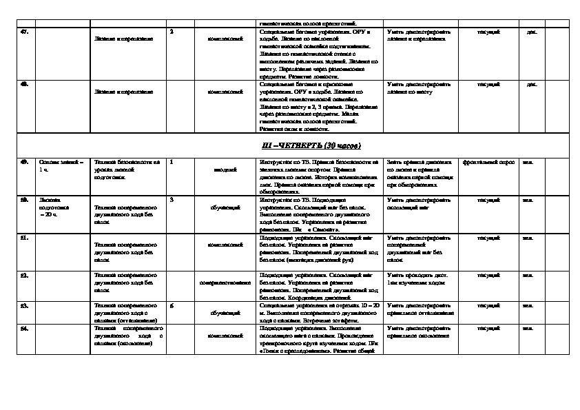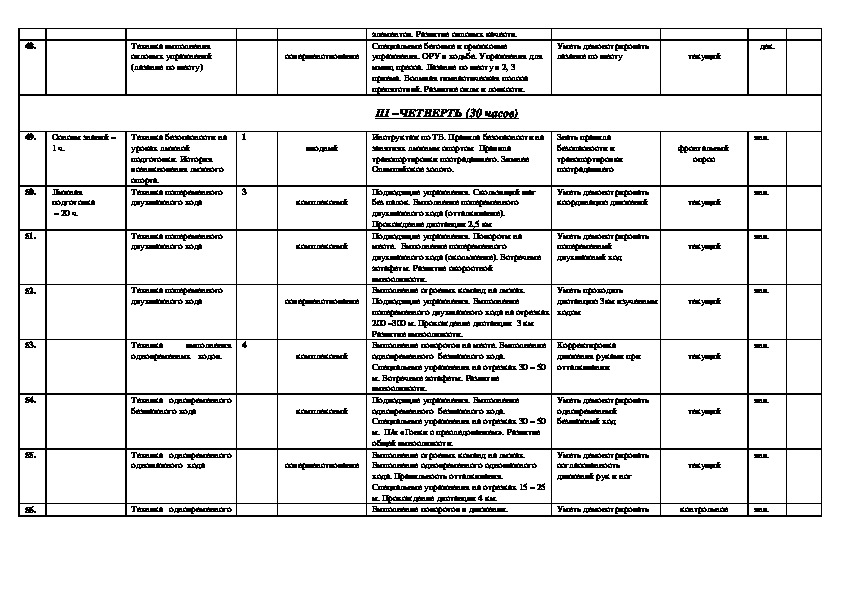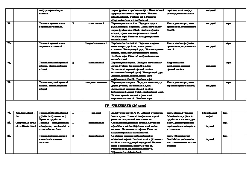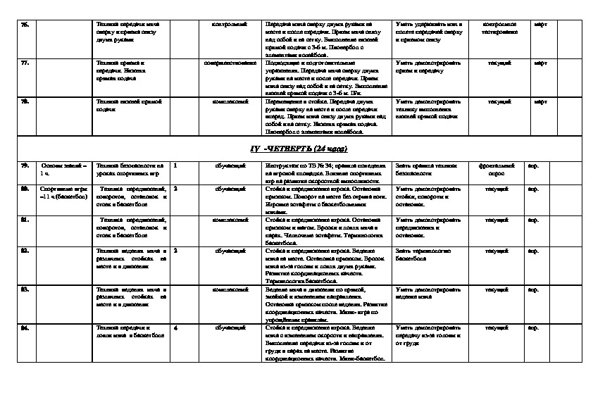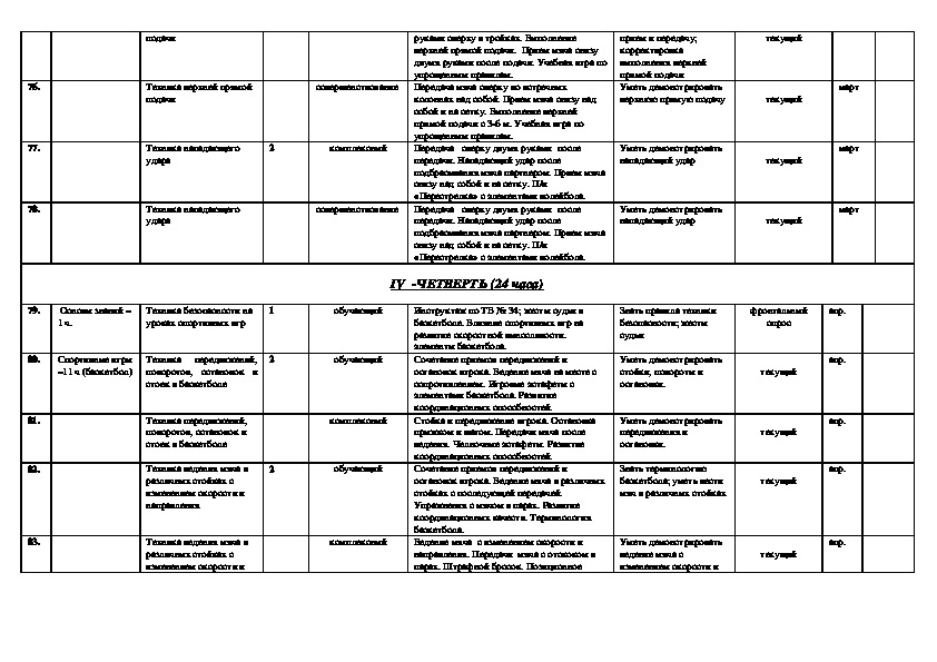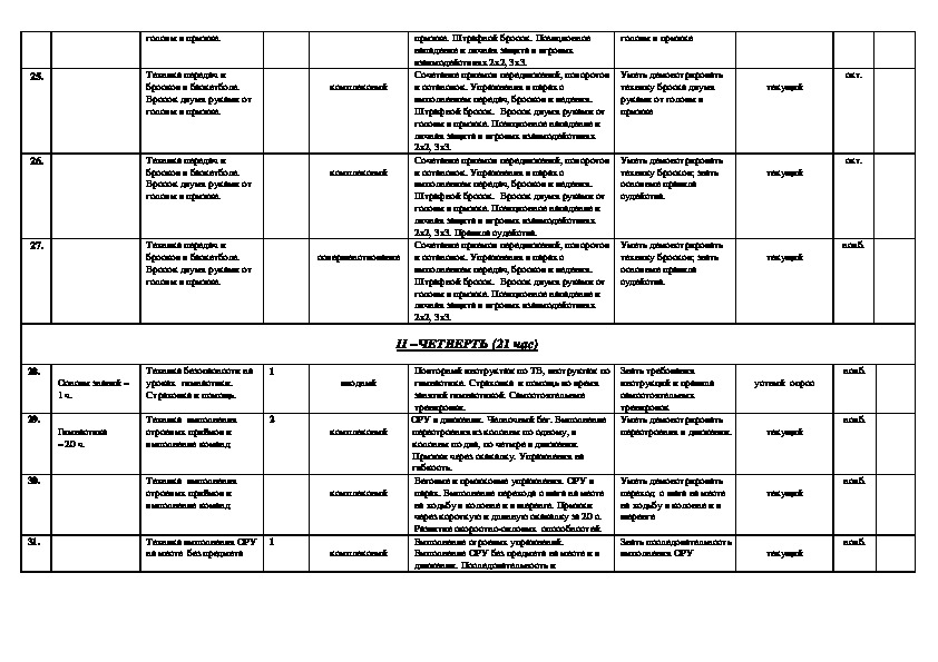 РАСПРЕДЕЛЕНИЕ ПРОГРАММНОГО МАТЕРИАЛА ПО ЧЕТВЕРТЯМ