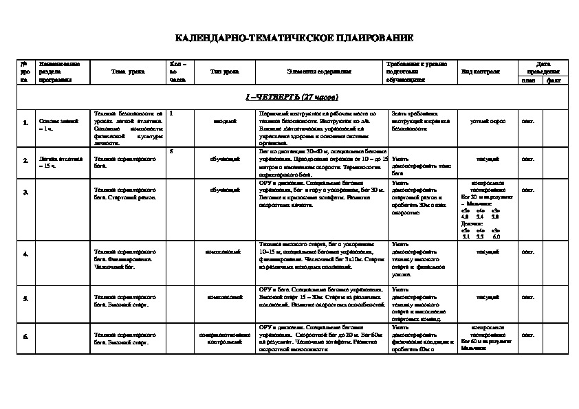 Календарно – тематическое планирование уроков разработано в соответствии с учебным планом, реализующим