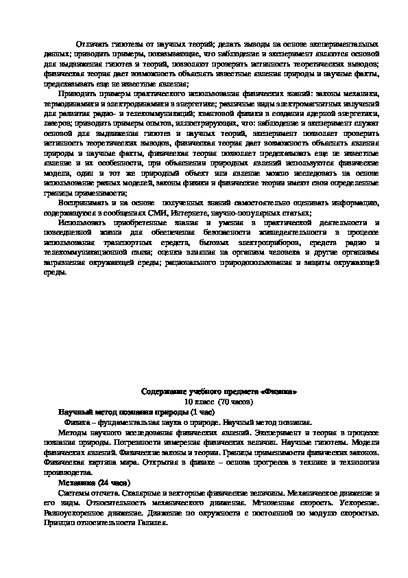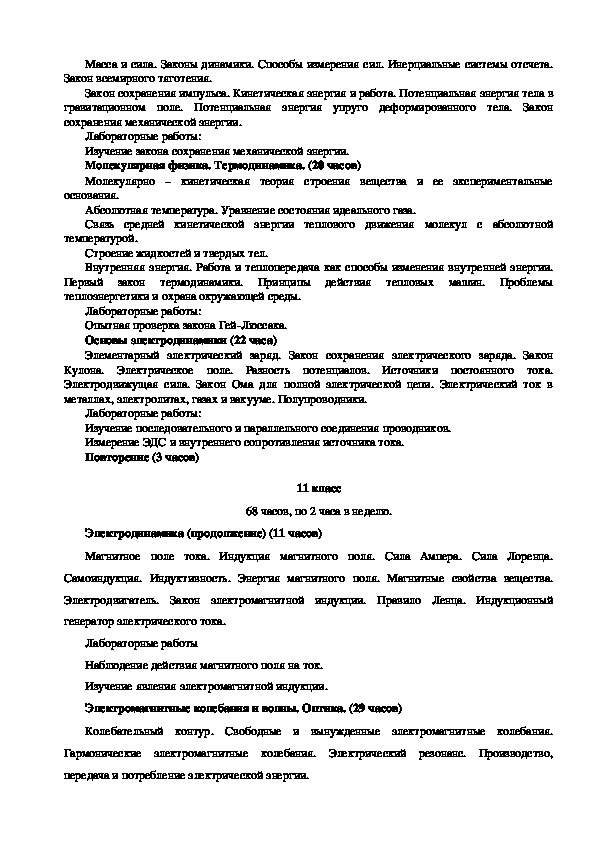неделю, 138 ч за два года изучения. (10класс 70 часов, 11 класс. 68ч.).Планируемые результаты освоения учебной программы по предмету.