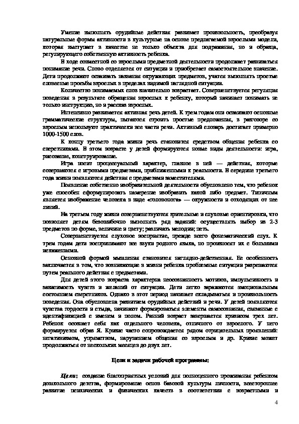 лет до 4 лет с учётом их возрастных и индивидуальных особенностей по основным