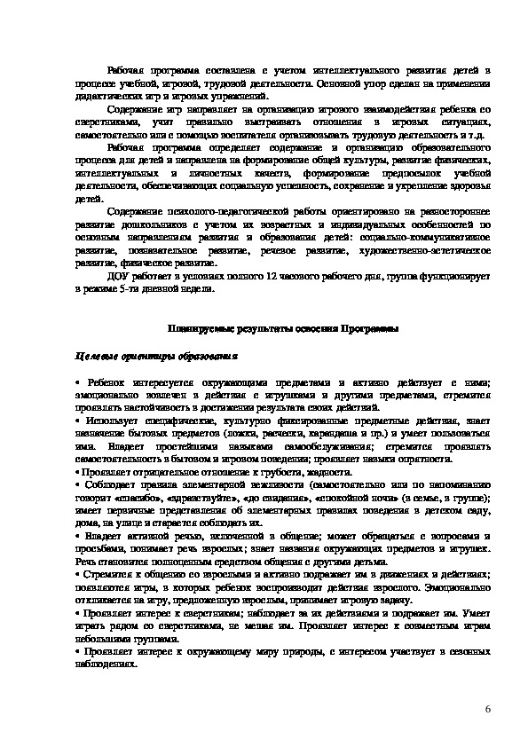 Планируемые результаты освоения программы………..……………...…...........................…6