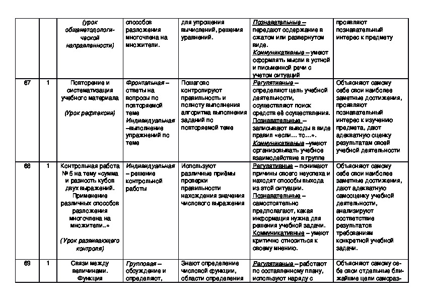 Личностные, метапредметные и предметные результаты освоения содержания курса алгебры:Изучение алгебры по данной программе способствует формированию у учащихся личностных, метапредметных и предметных
