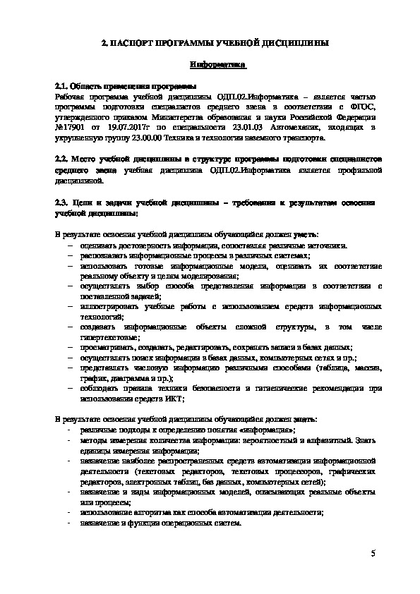 Программа учебной дисциплины ОДП.02.Информатика