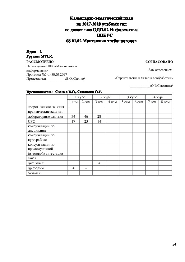 Председатель ПЦК ________________ /В.О.Саенко /