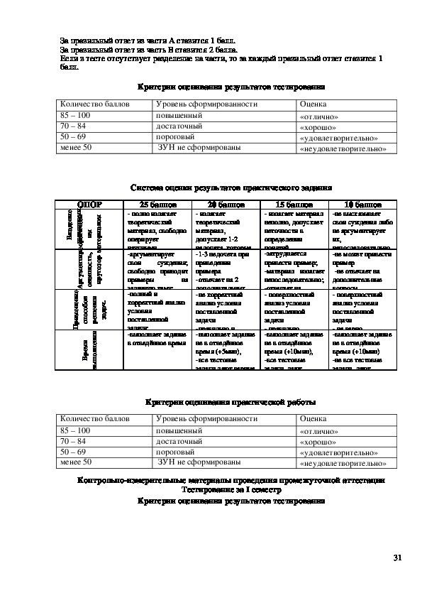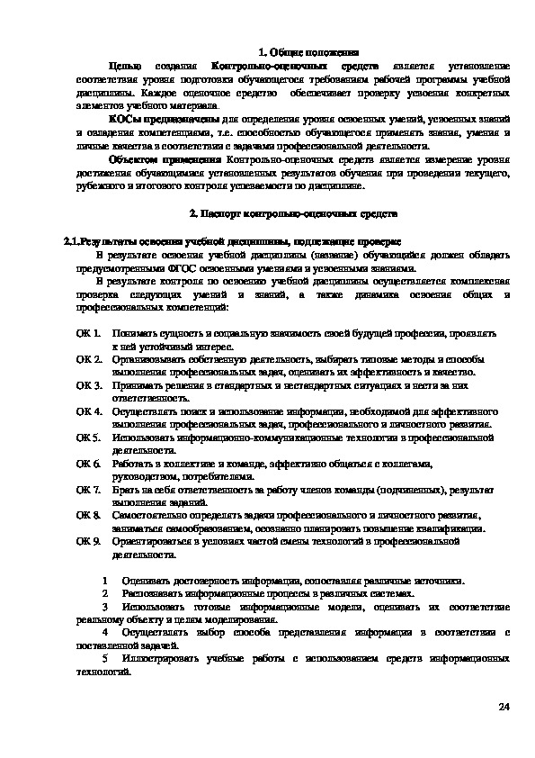 Оформление контрольнооценочных средств