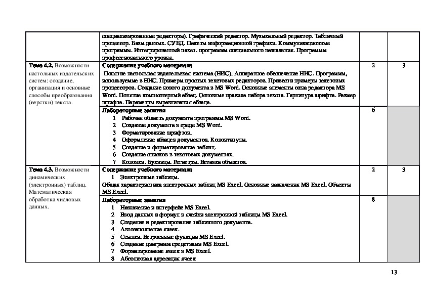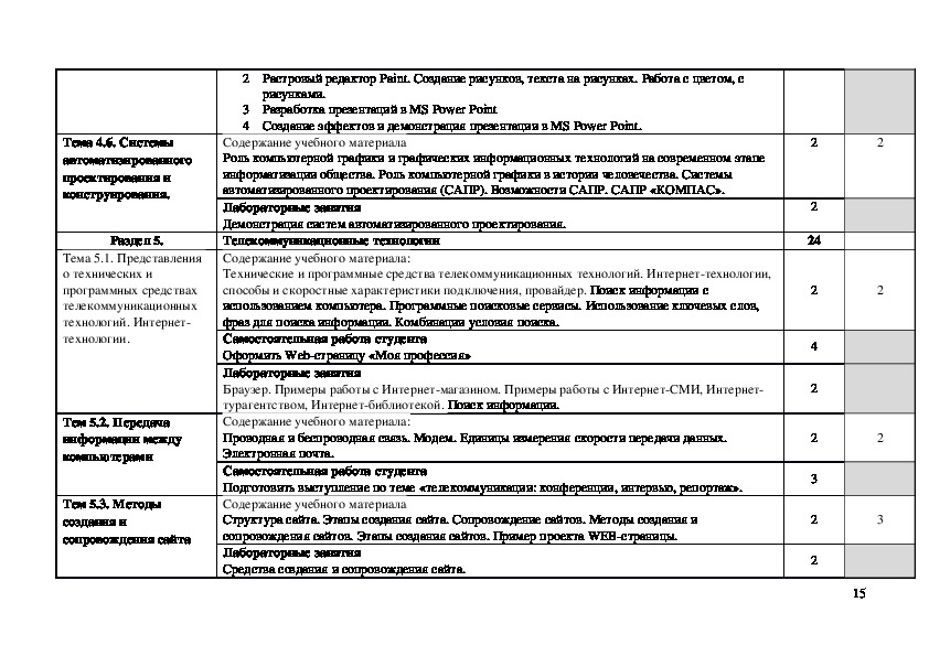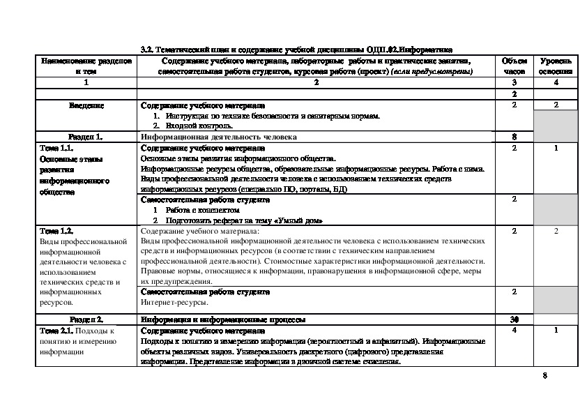В рабочей программе дисциплины ОДП.02.Информатика содержится теоретическая и
