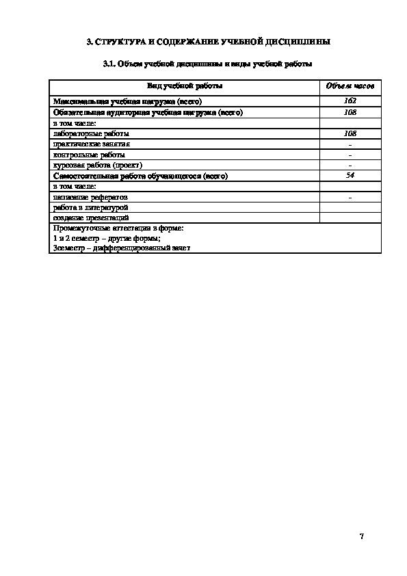 объем учебной дисциплины и виды учебной работы;