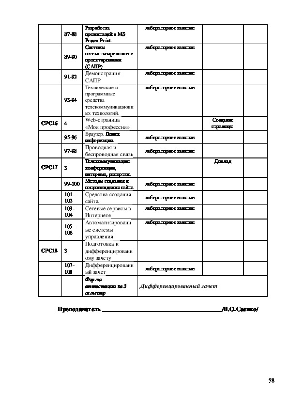 На рабочую программу по дисциплине «Информатика»