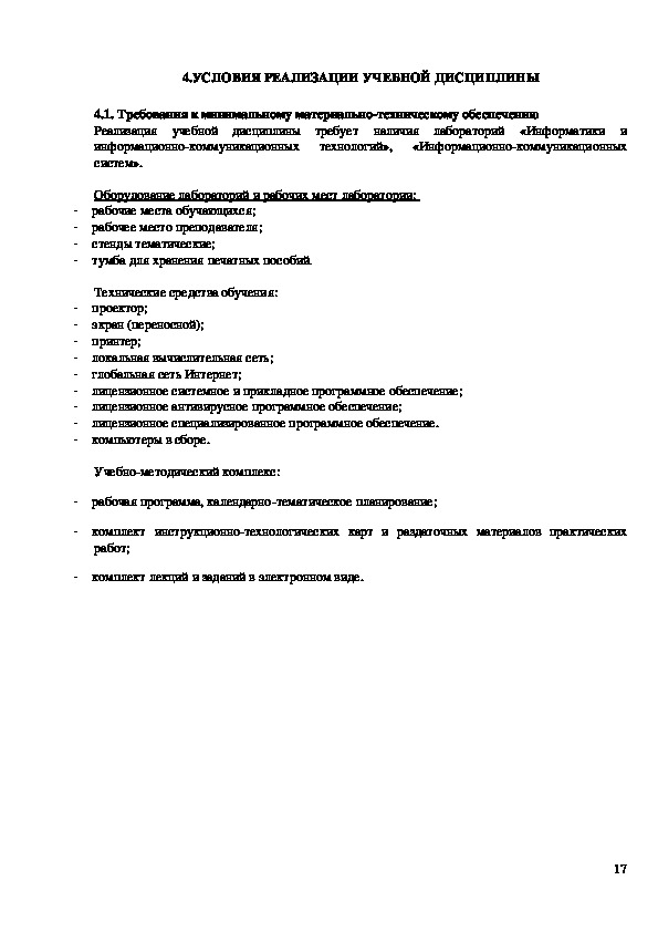 требования к минимальному материально-техническому обеспечению;
